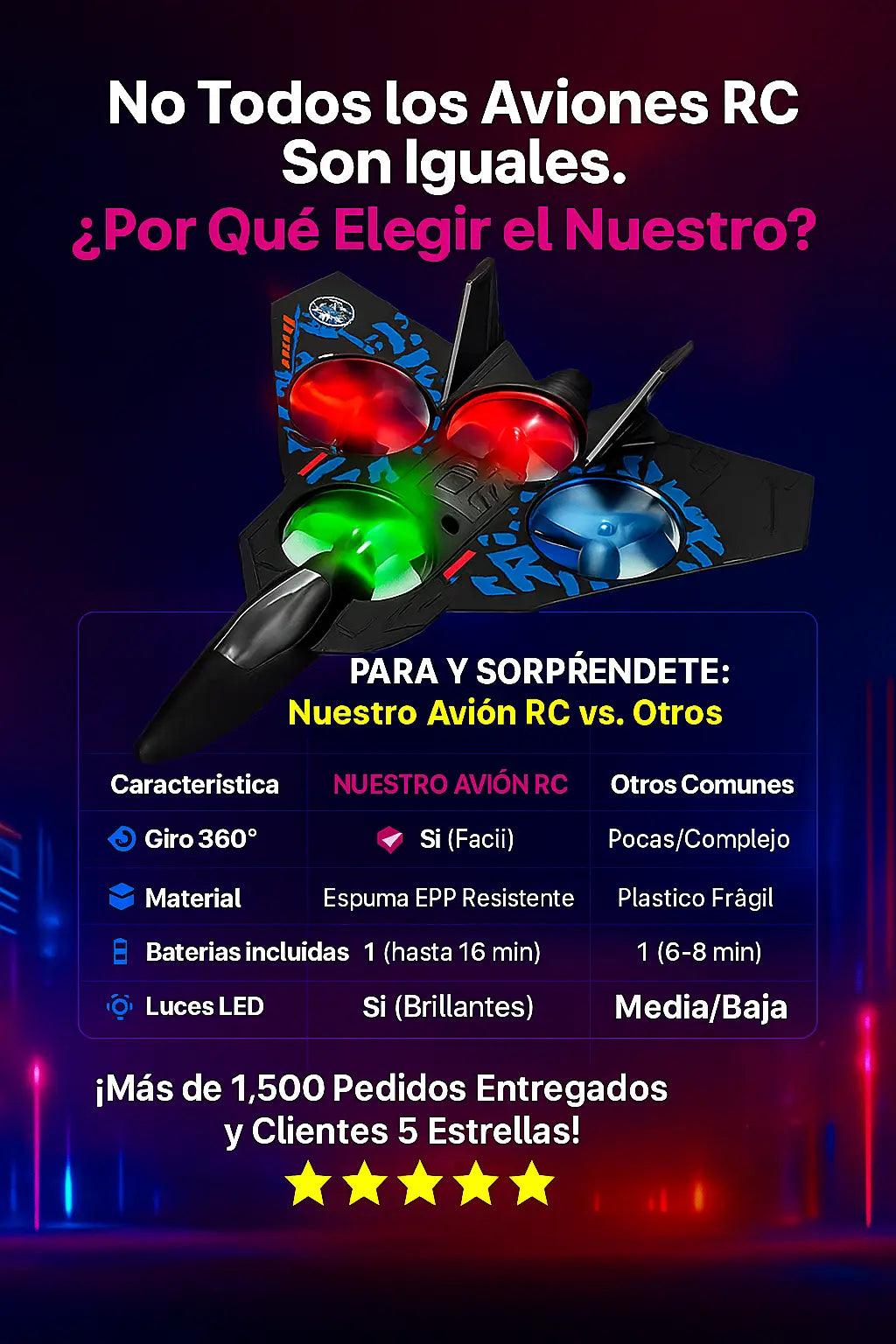 ¡Increíble! Mi hijo quedó fascinado con el avión. Hace giros 360 sin caerse y las luces neón se ven brutales en la noche.